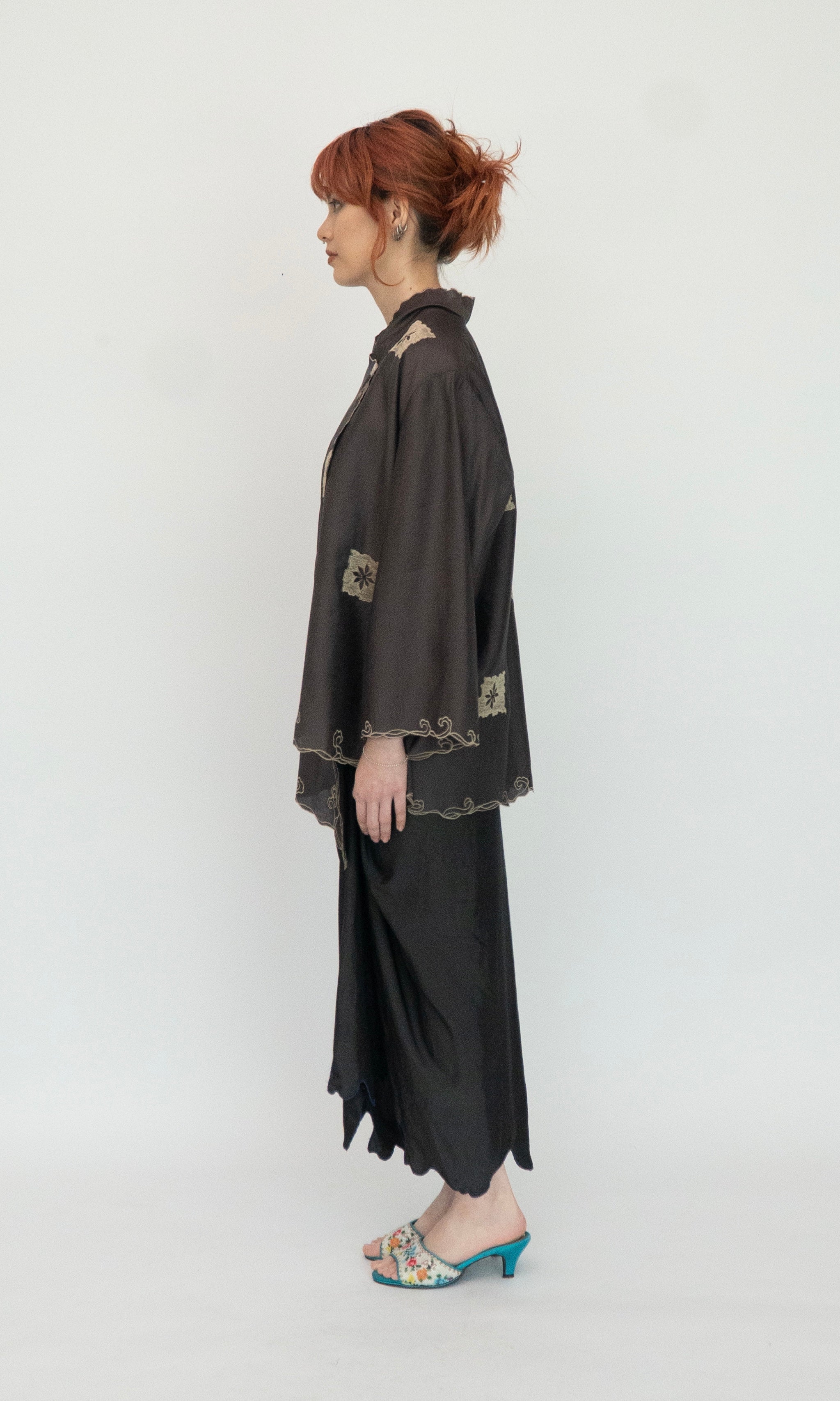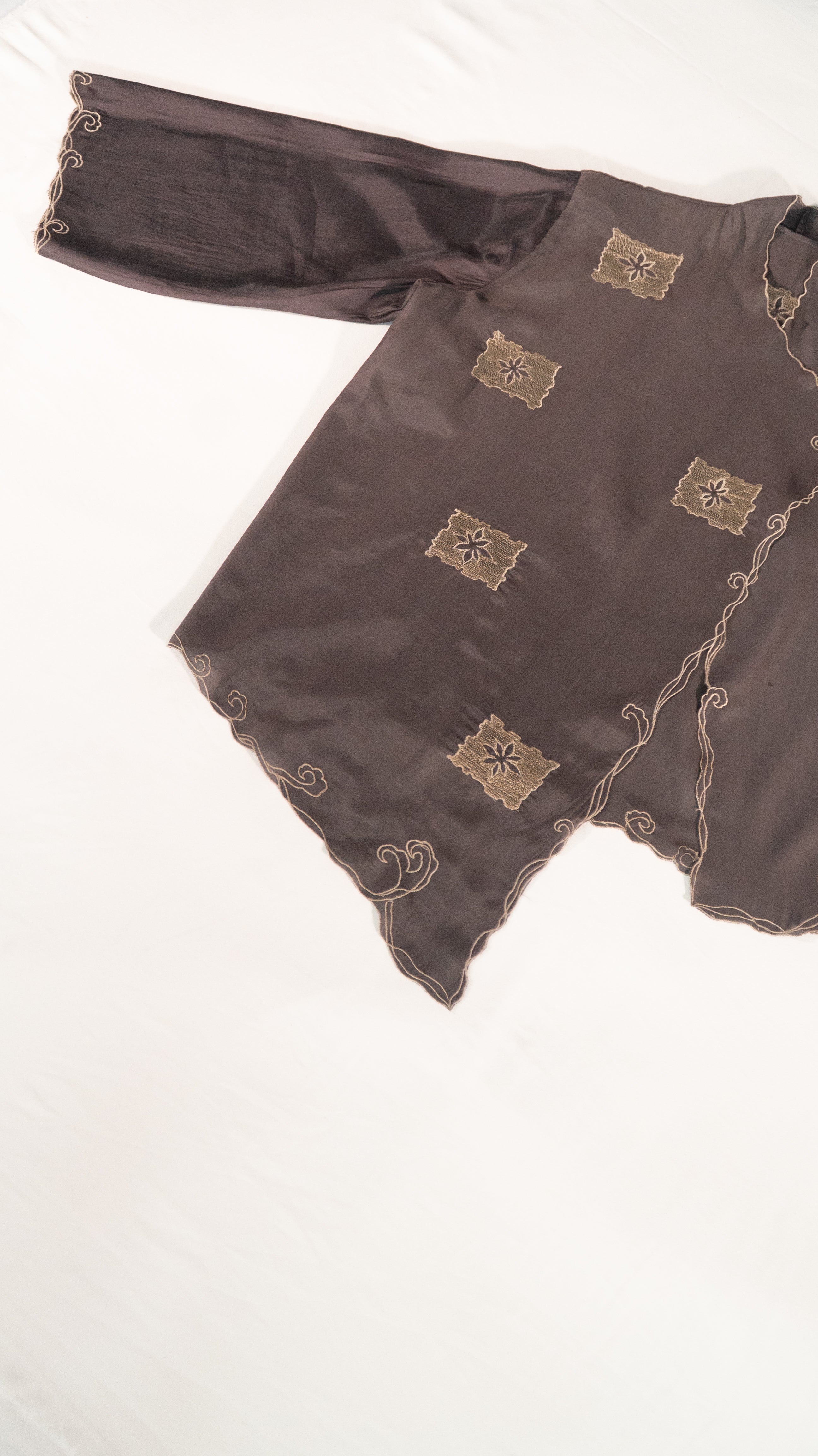 - Delicate wave motifs embroidery along all edges.