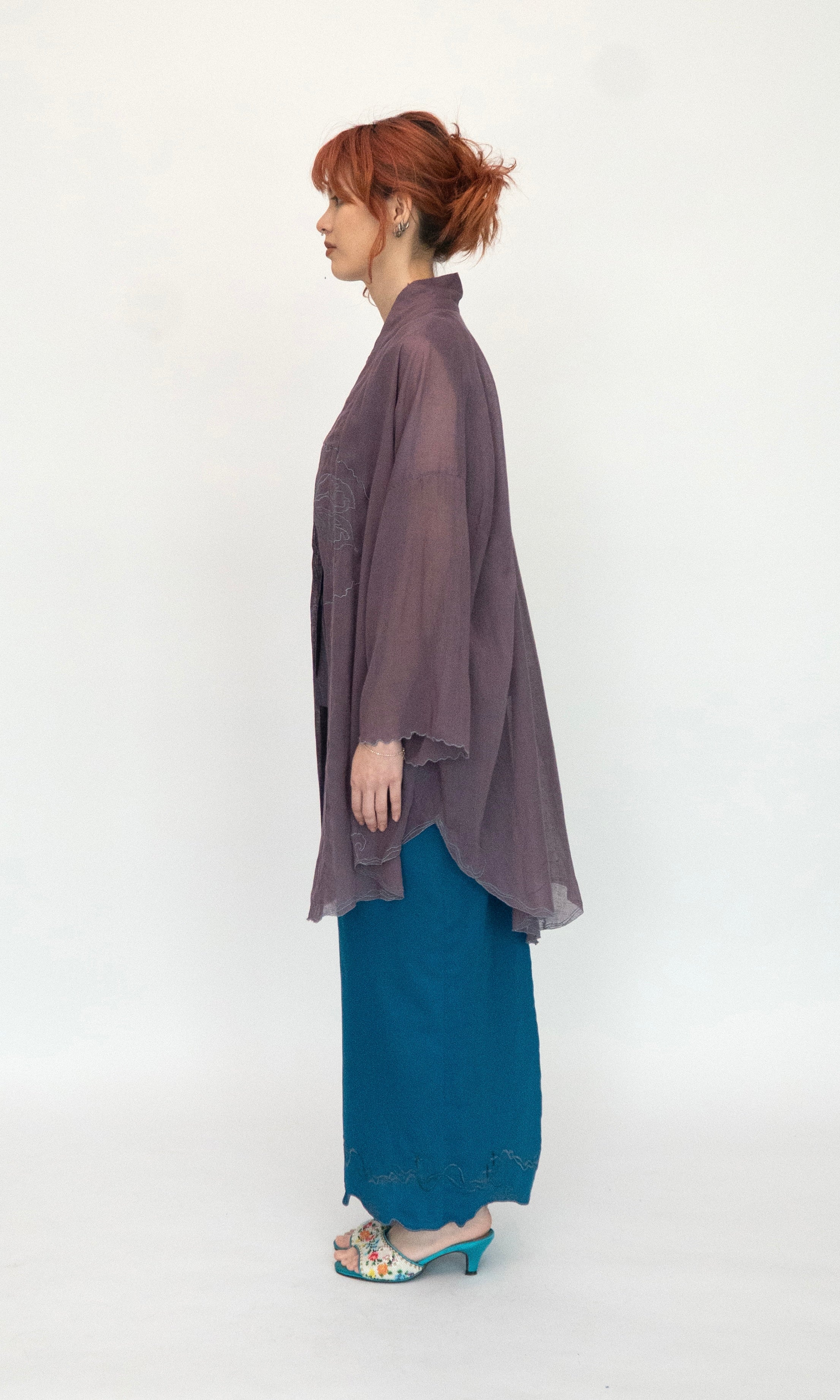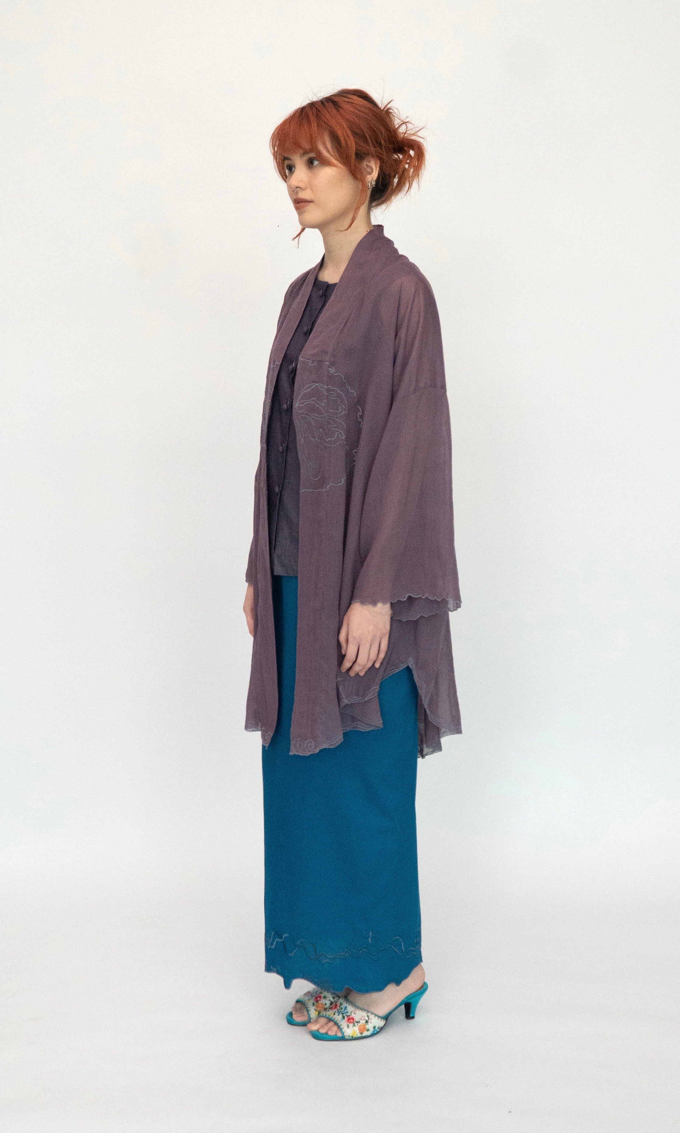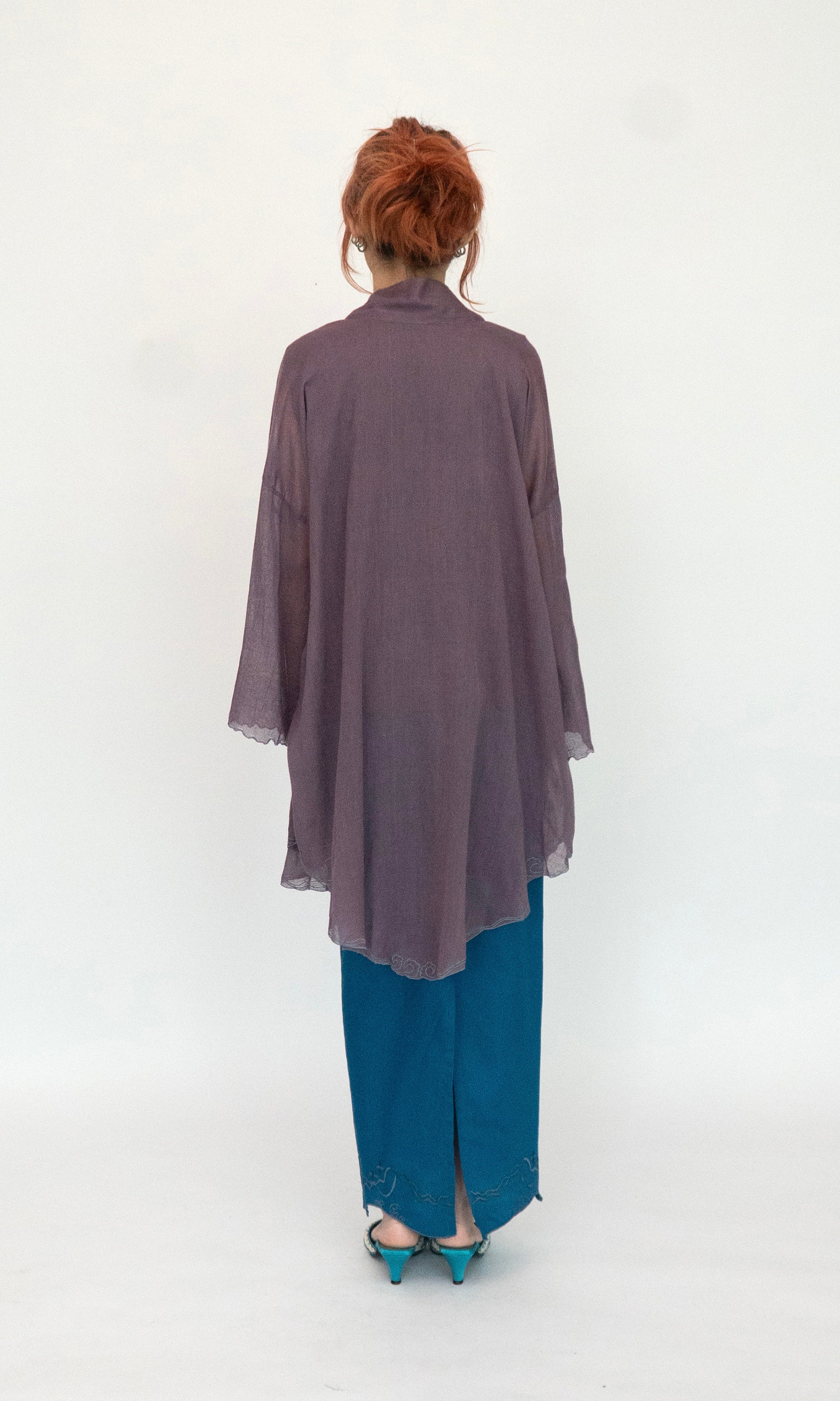 - Embroidery detail along the sleeve openings and hemline.