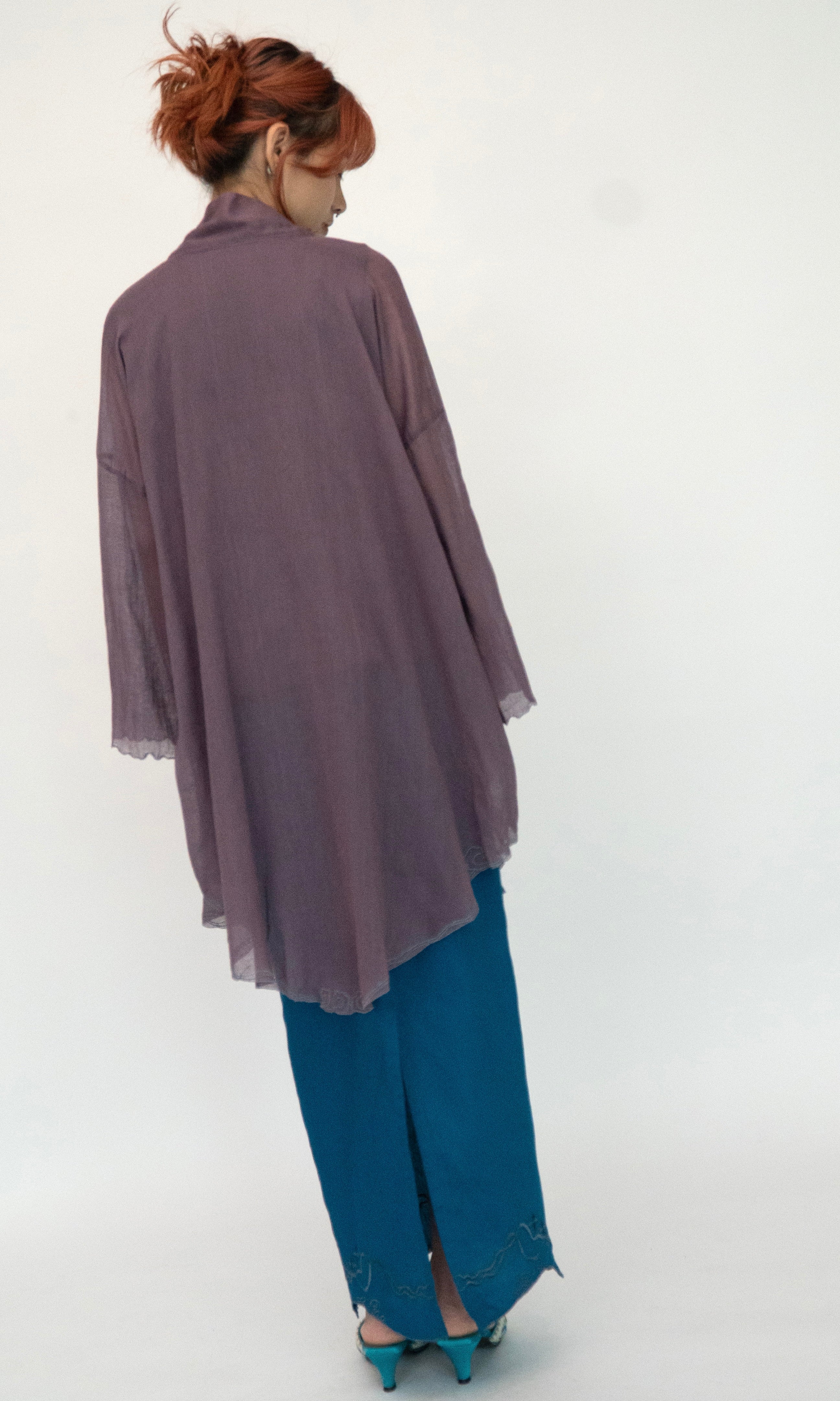- Loose cut drop-shoulder baju panjang.