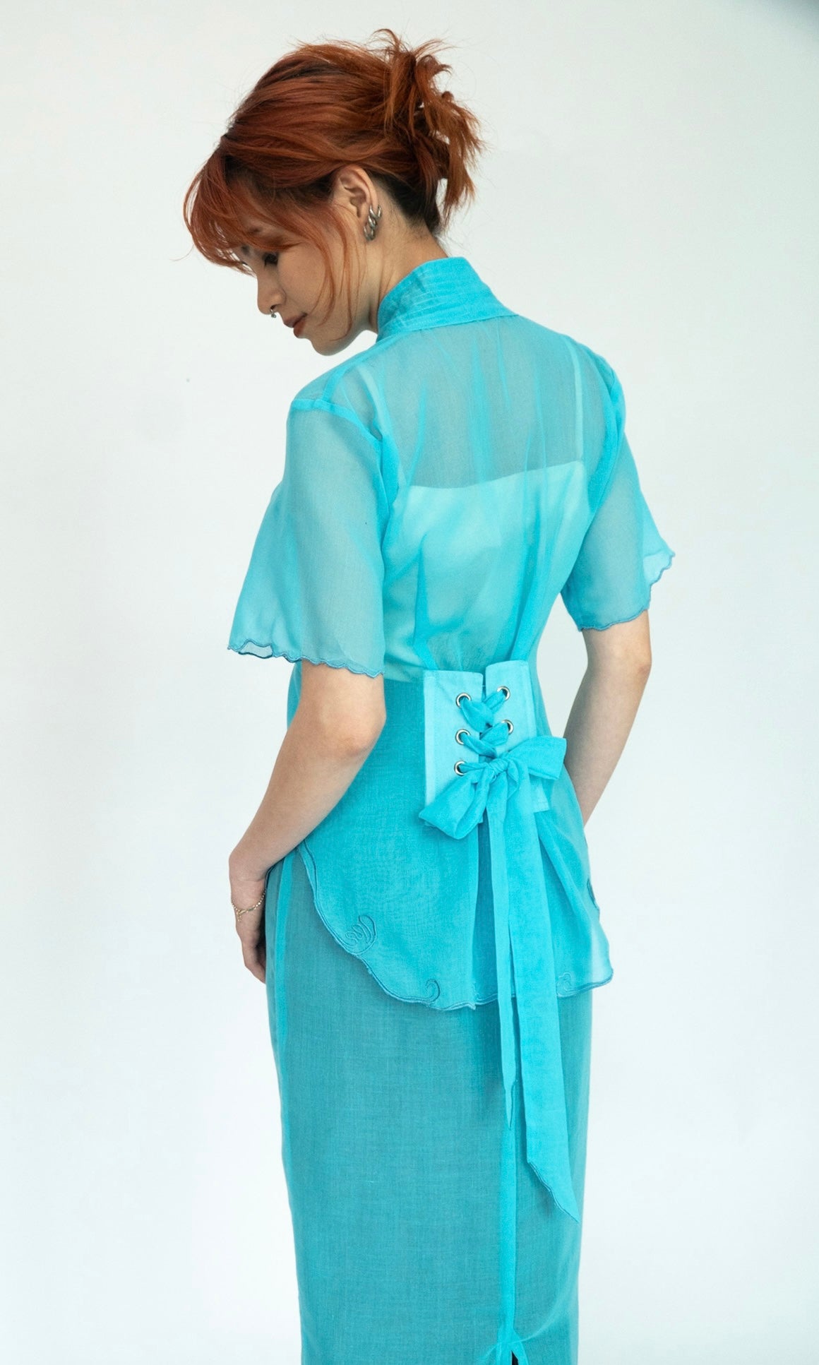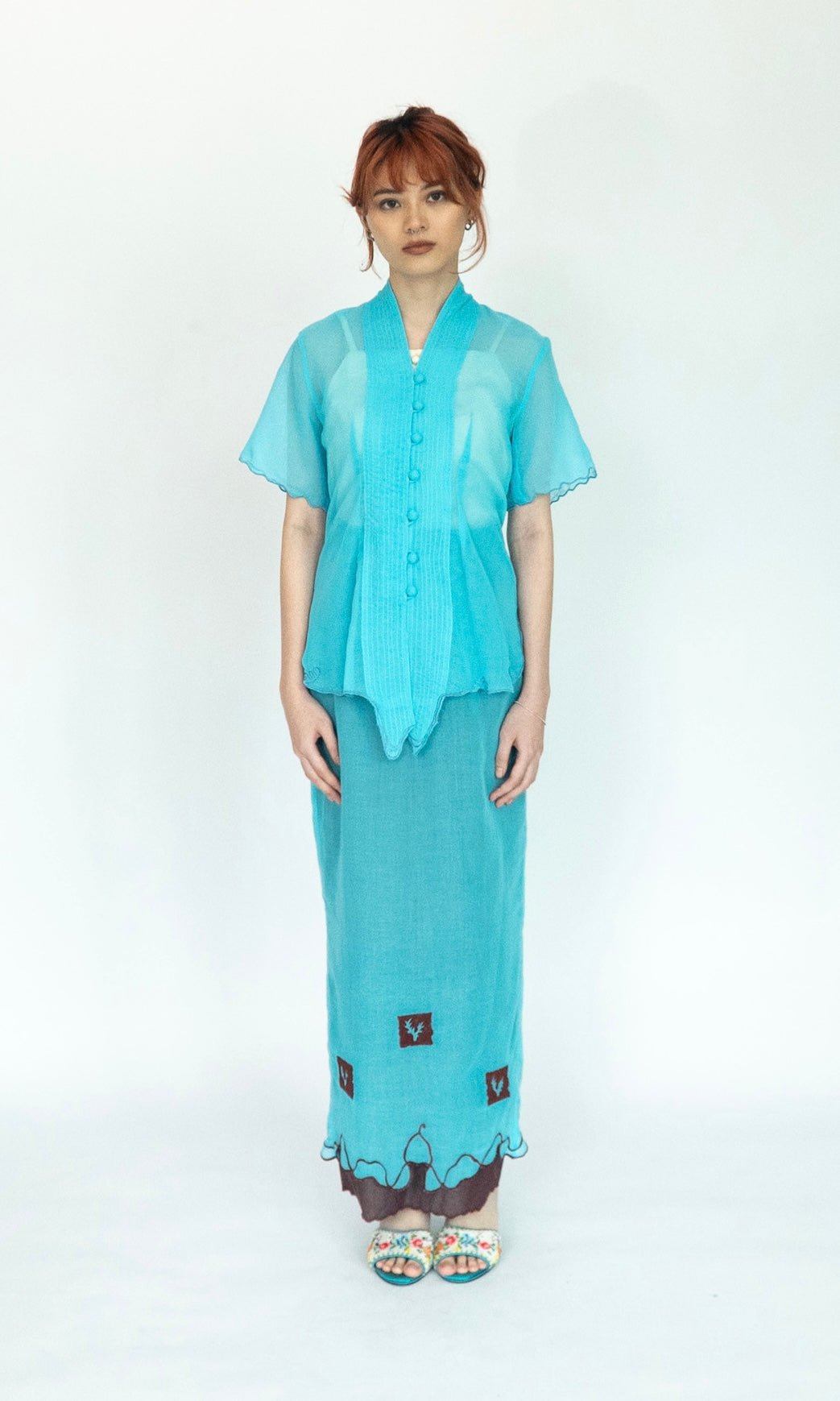 - Short sleeve relaxed fit kebaya.