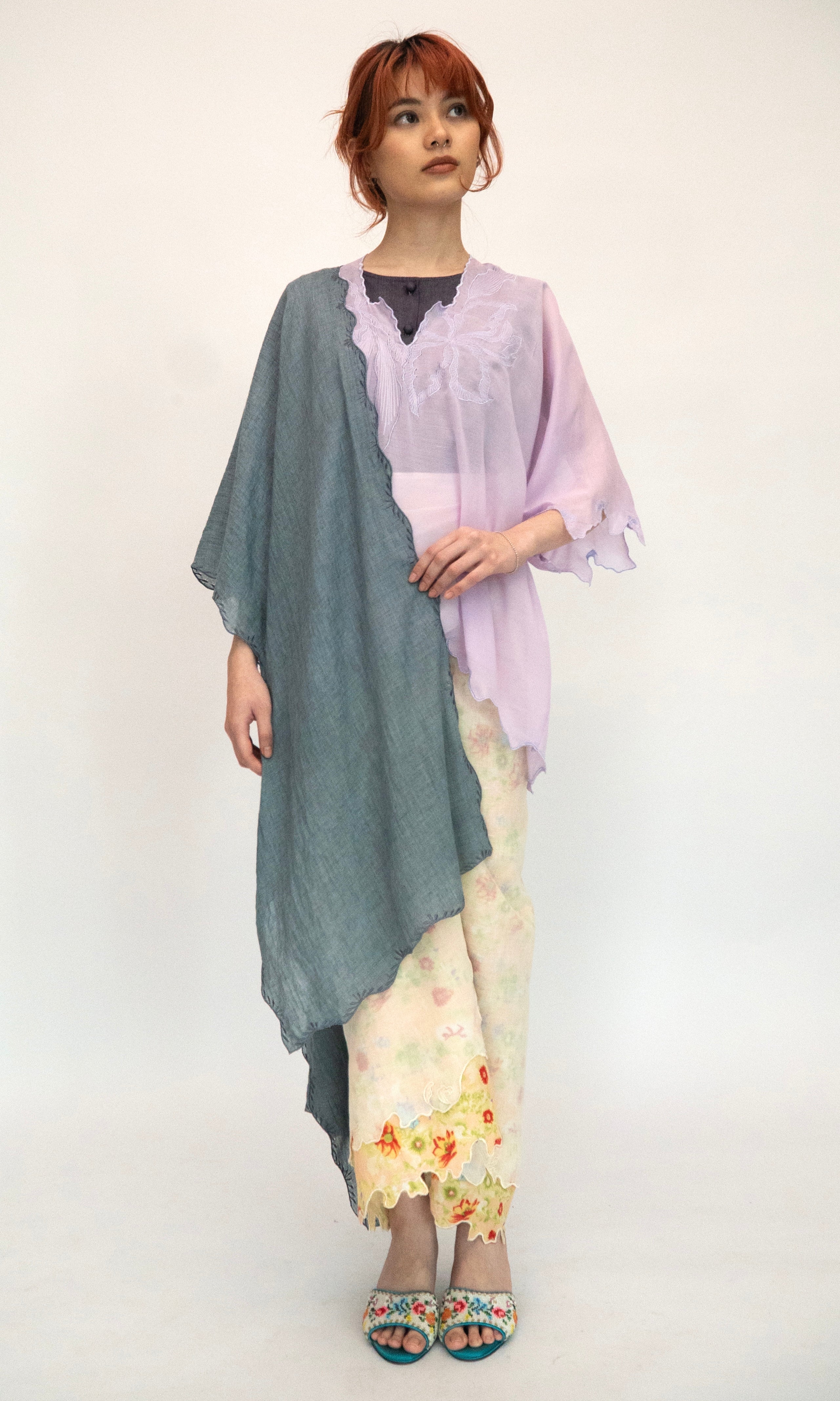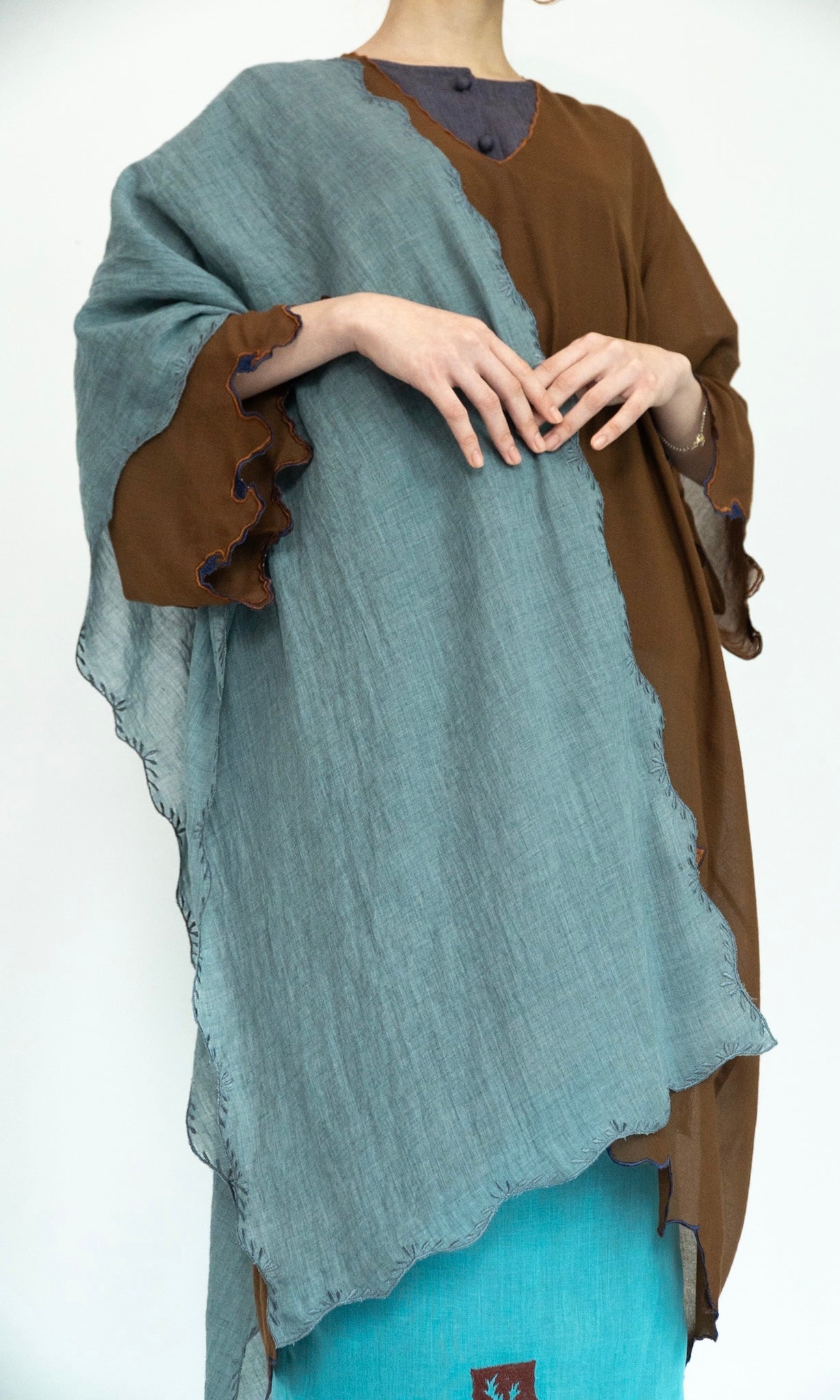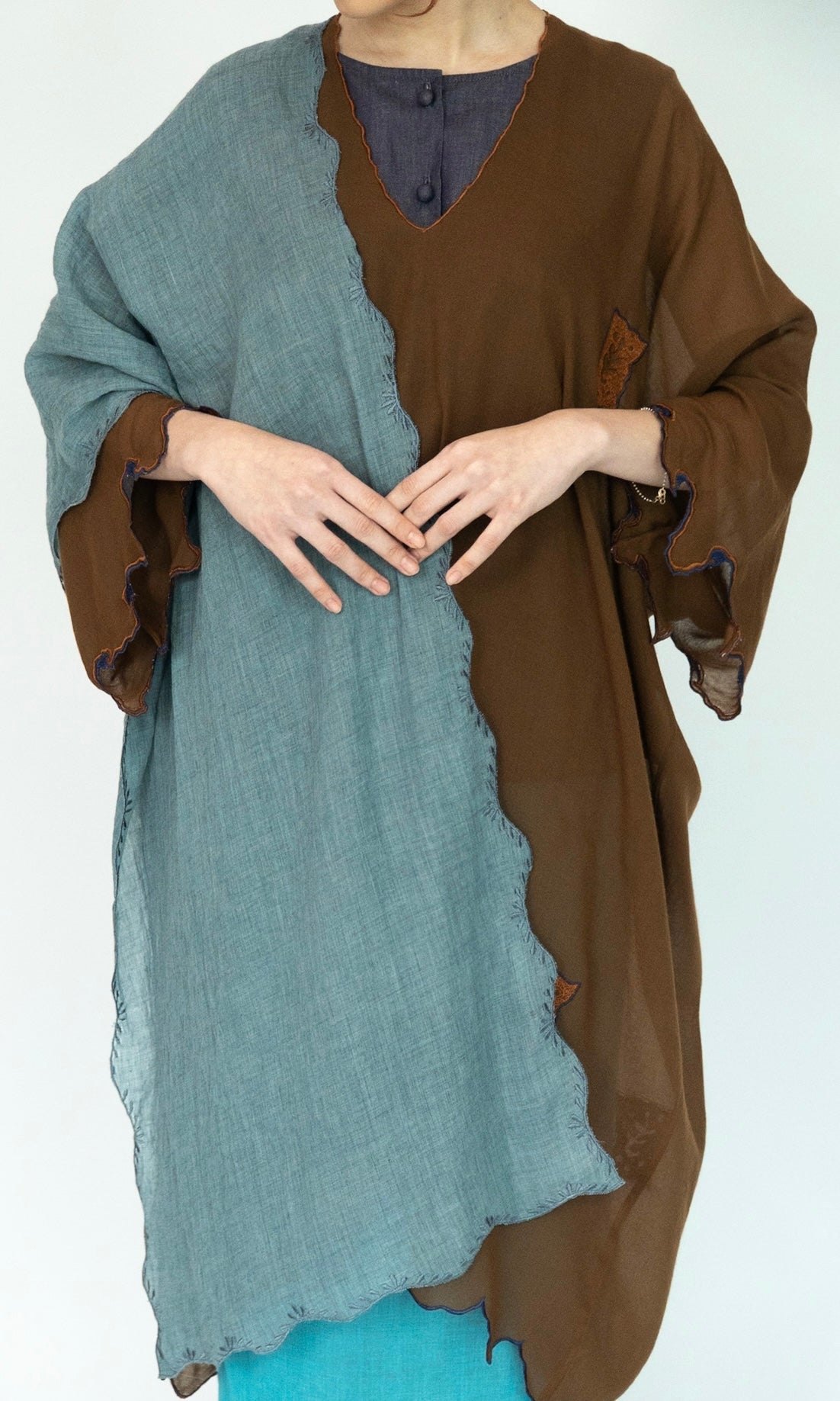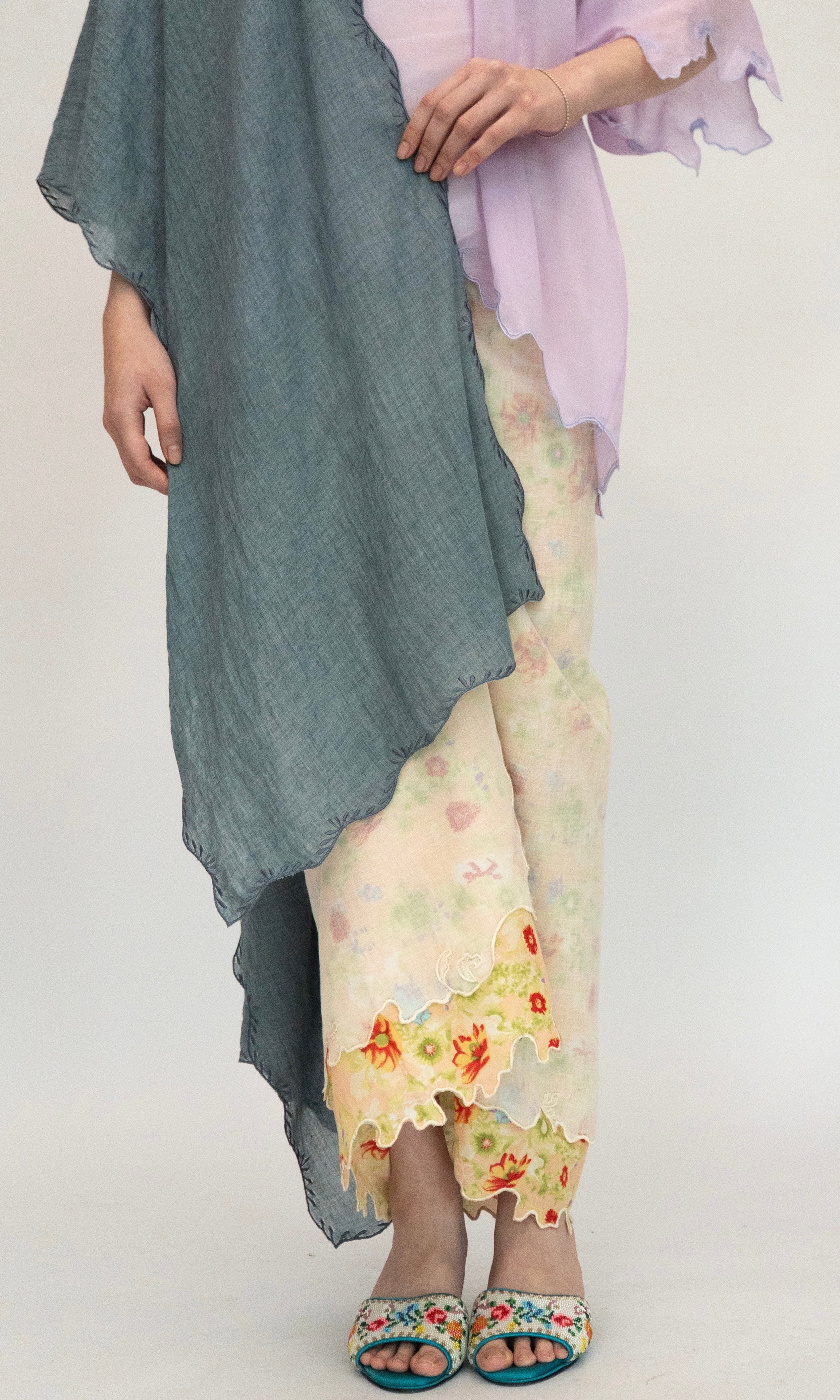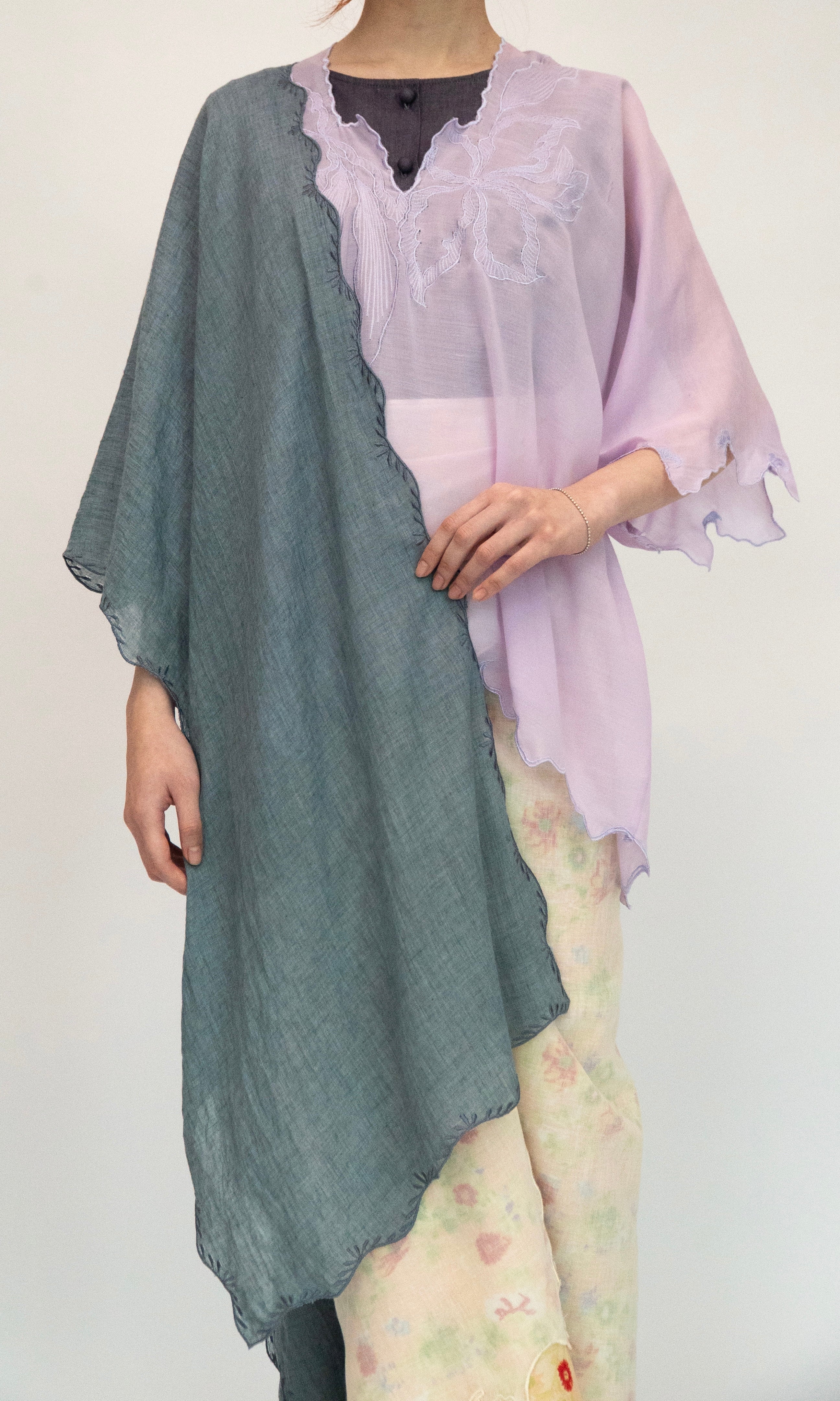 - Selendang panjang with embroidery edges all around.