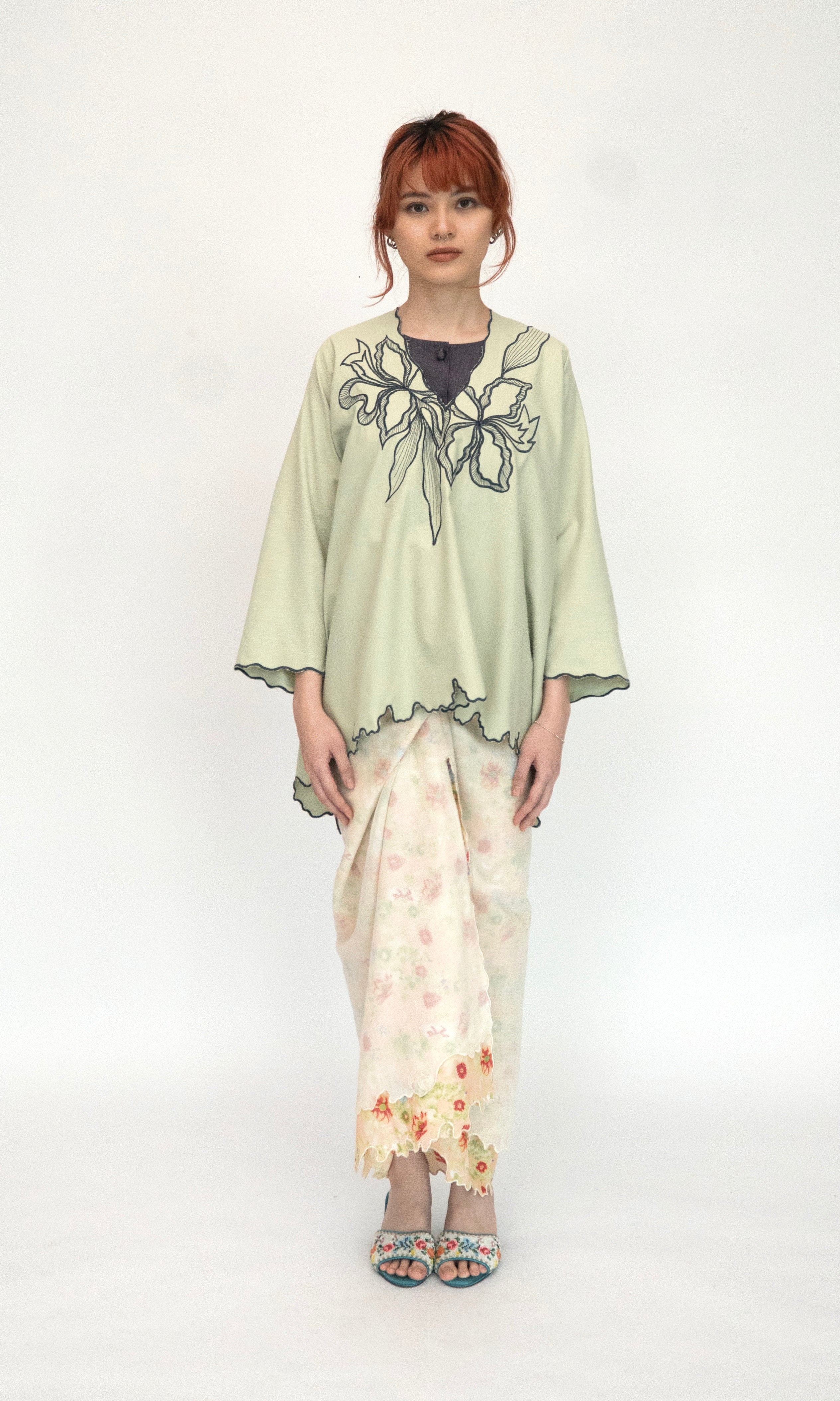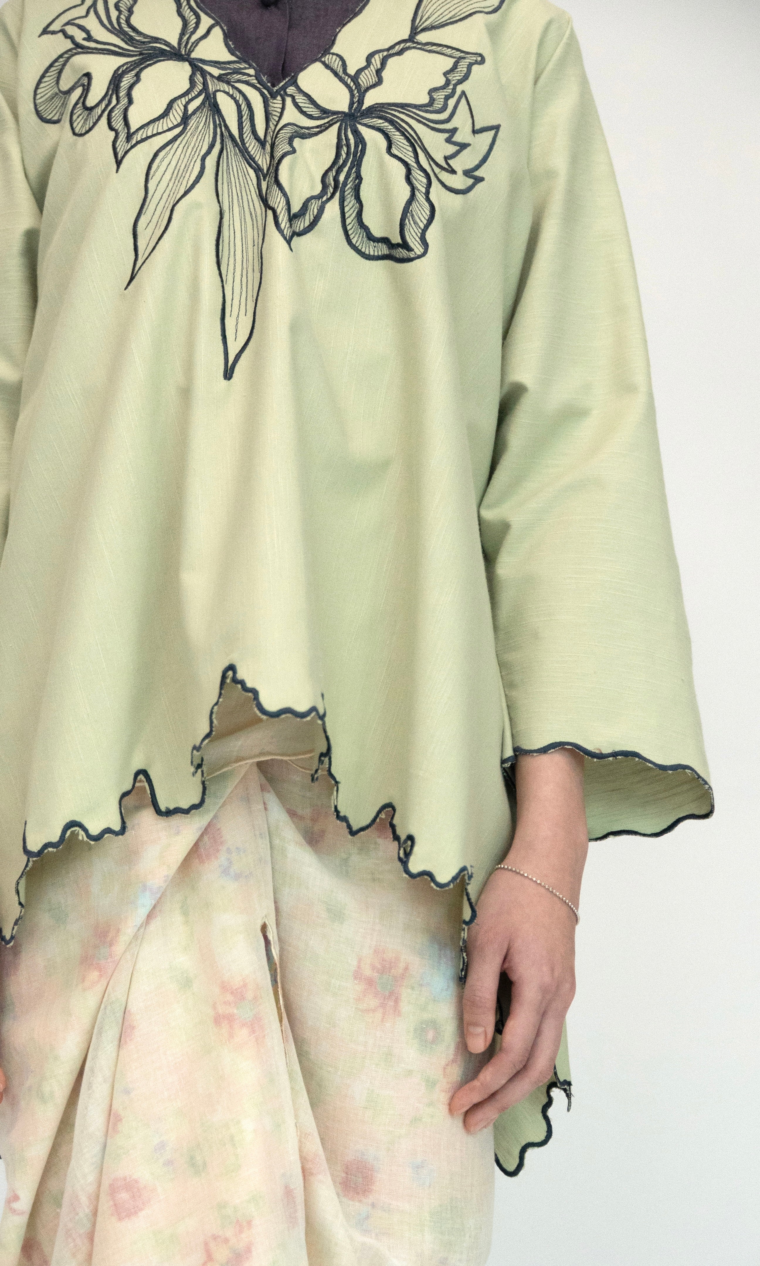 - Delicate floral embroidery around the neckline.